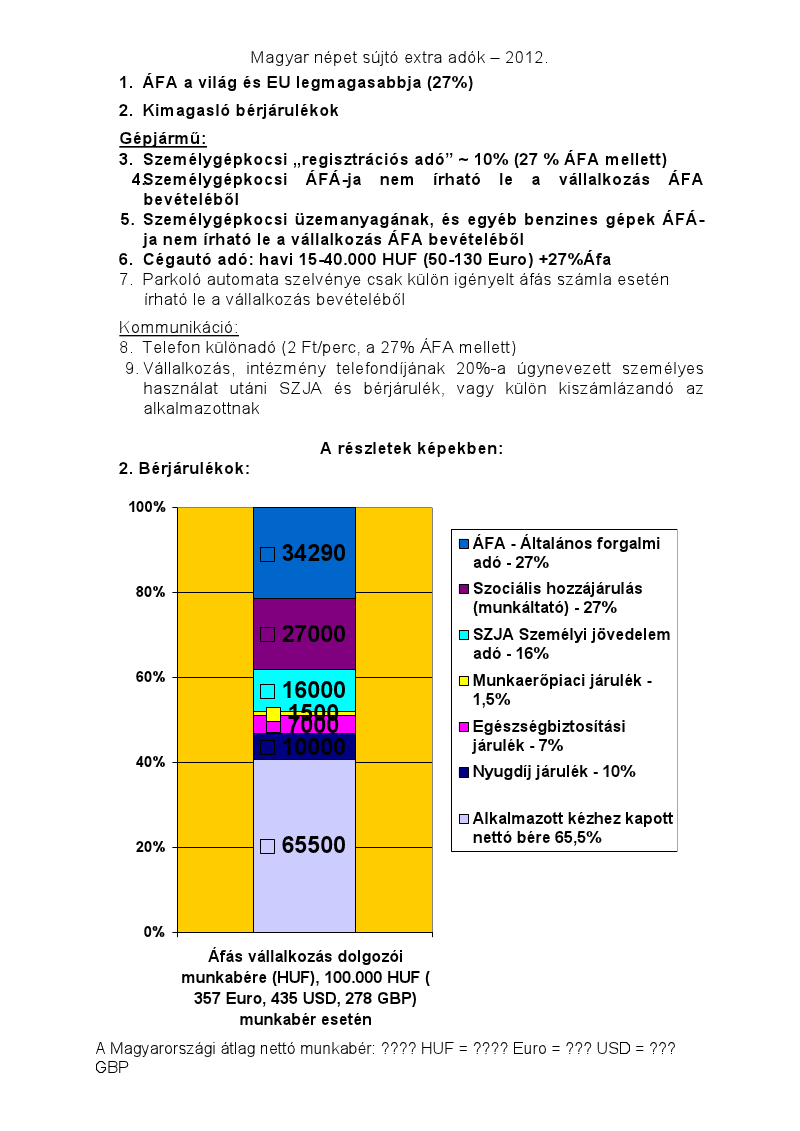 Klassz a honlapod, mely sokat segÃtett a felébredésben. A magyar népet sújtó, szerintem extrém magas magyar adók bemutatását szeretném elindÃtani, melyhez elsõre a mellékelt összeállÃtást készÃtettem.